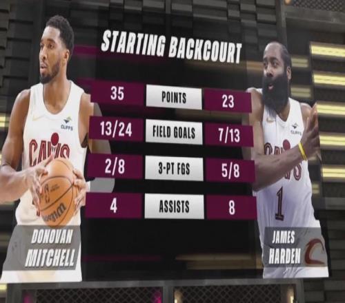 哈登騎士首秀先抑后揚,上半場6中1,下半場7中6包括關(guān)鍵時刻連續(xù)轟進兩記三分球,最終全場出戰(zhàn)約32分鐘,投籃13中7(...