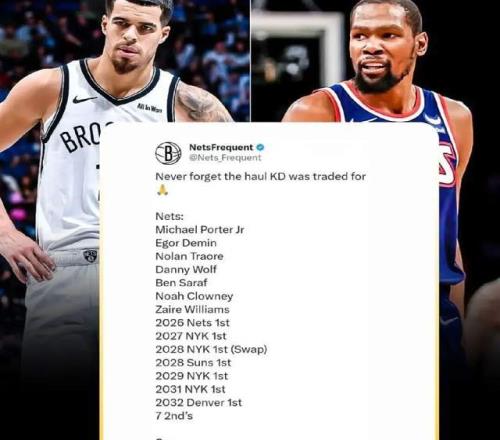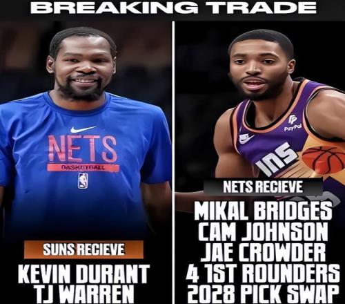 時(shí)間回到2023年交易截止日前,籃網(wǎng)送走杜蘭特,換回了布里奇斯+卡梅倫·約翰遜+克勞德,附加4個(gè)無(wú)保護(hù)首輪和1個(gè)首輪互換。