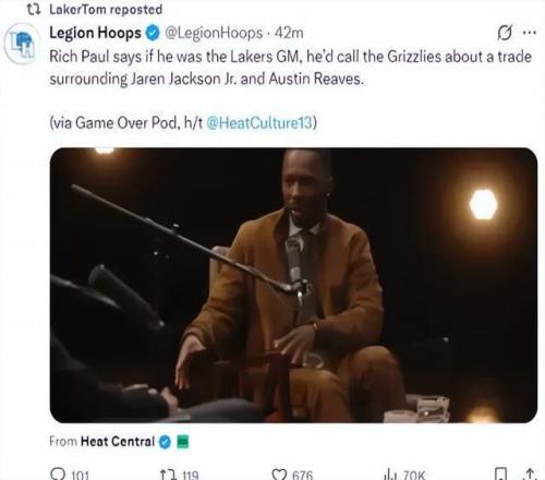 而就在灰熊這條重建消息公開之后,真正第一個抓住熱點的,是NBA第一經(jīng)紀人里奇·保羅;他在個人播客節(jié)目里第一時間給出觀點: