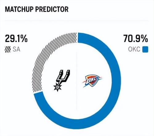 賽前,美媒ESPN對本場比賽進行了勝率預(yù)測,馬刺隊勝率僅有29.1%,依舊不被看好,雷霆隊勝率則高達70.9% ,顯然美媒都看好雷霆本場能夠打破“魔咒” ,完成復(fù)仇之戰(zhàn)。