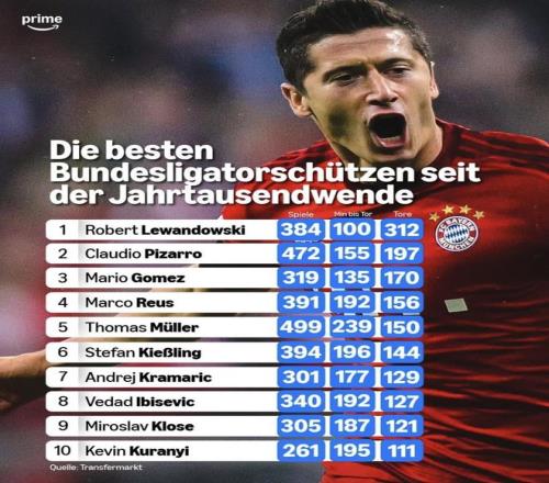 最近Prime發(fā)了《千禧年以來德甲最佳射手榜》。皮薩羅、戈麥斯、羅伊斯、穆勒這些名字都在,光看出場和進球就已經(jīng)很有沖擊力。更夸張的是榜首那個人,進球數(shù)直接把第二名甩出一大截,數(shù)字看著都離譜。數(shù)據(jù)截至2026年1月2日。