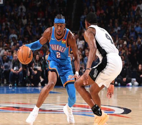 雷霆主場(chǎng)迎戰(zhàn)馬刺,雷霆少了多爾特、哈滕,馬刺少了瓦塞爾,上半場(chǎng)比賽雙方旗鼓相當(dāng),半場(chǎng)戰(zhàn)罷雷霆領(lǐng)先3分,第三節(jié)雷霆單節(jié)贏了16分,第四節(jié)分差一度來(lái)到24分,最終雷霆大勝21分。亞歷山大23中11得到34分5板5助4帽,杰倫15中9得到20分3助2斷,馬刺方面文班15中7得到17分7板,卡斯?fàn)?3中6(三分5中3)得到20分7板8助。
