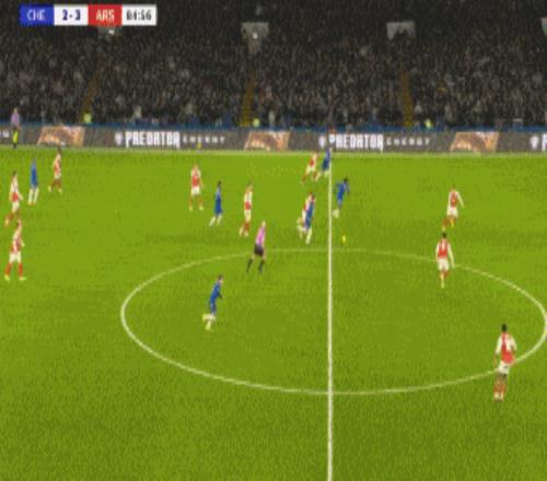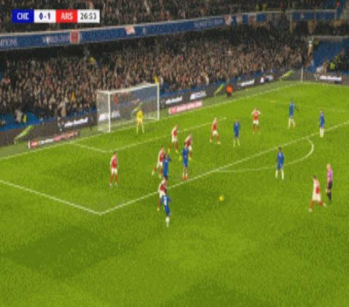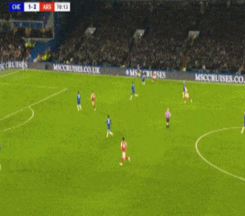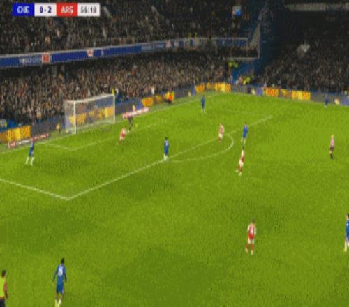 第83分鐘,切爾西角球機會,加納喬凌空抽射破門梅開二度,切爾西再追一球,2-3阿森納。