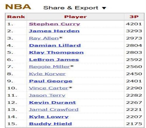 在比賽進(jìn)行到首節(jié)末段時(shí),克萊投中了本場(chǎng)比賽的第1記三分球,他也由此超越了開(kāi)拓者球星利拉德,獨(dú)享歷史第四位。