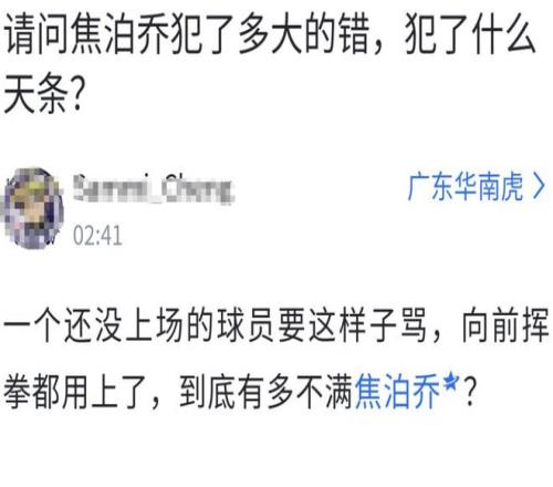 這就有點離譜了,明明是王少杰、杜潤旺防守出現(xiàn)了大空位漏人,杜鋒前腳罵完王少杰,后腳又對前7分鐘比賽一秒沒打的焦泊喬一頓臭罵,十分不可理喻,有球迷在賽后發(fā)帖替焦泊喬伸冤:一個還沒上場的球員都要這樣子罵,向前揮拳都用上了,到底有多不滿焦泊喬?焦泊喬是犯了什么天條?