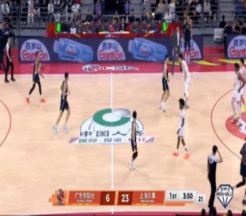 第一節(jié)廣東隊上來就被上海的一套內(nèi)外連線+跑轟反擊直接打懵,第一節(jié)進(jìn)行到還剩3分47秒,廣東隊已經(jīng)落后上海20分,杜鋒再次準(zhǔn)備換人,焦泊喬來到場邊候場。