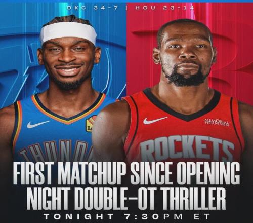 北京時間1月16日,NBA常規(guī)賽:火箭主場vs雷霆。截至今天賽前,火箭23勝14負(fù)排名西部第6,領(lǐng)先第7的太陽0.5個勝場。雷霆34勝7負(fù)依然高居聯(lián)盟第一,領(lǐng)先東部榜首的活塞4.5個勝場,領(lǐng)先西部第二的掘金6個勝場。