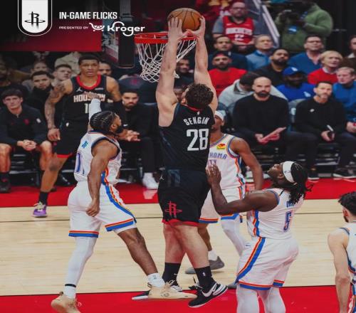 火箭在防守端做了精心布置,阿門和奧科吉夾擊亞歷山大。面對兩個防守大閘,亞歷山大首節(jié)2中0僅得0分1助3失誤。雷霆也給足身體對抗,杜蘭特首節(jié)7中1只拿到2分。申京退防太慢,霍姆格倫里突外投,首節(jié)4中4狂砍11分3板。