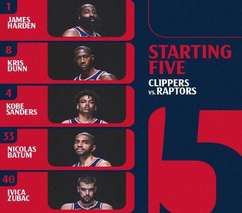 快船:哈登、巴圖姆、祖巴茨、鄧恩、桑德斯