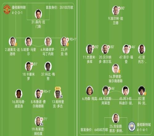 曼聯(lián)積35分位列英超第4,遭遇4輪不勝的曼城積43分排在聯(lián)賽第2,落后阿森納7分。