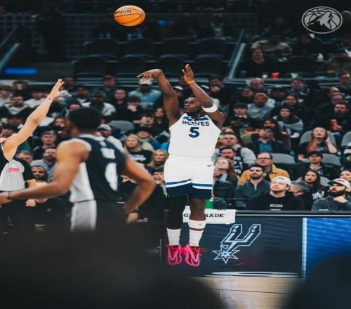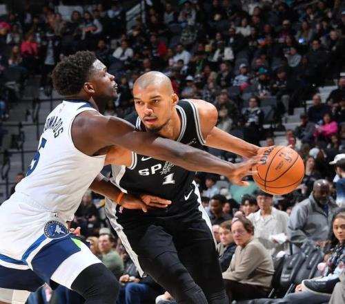 因為文班第二節(jié)的爆發(fā),馬刺一度領(lǐng)先森林狼25分。森林狼可謂是風(fēng)雨交加,戈貝爾不打,里德傷退,愛德華茲的腳傷復(fù)發(fā)在比賽里一瘸一拐的。在比賽里,森林狼距離放棄可能就差一個契機,然而華子直到比賽結(jié)束也沒揮出白旗。