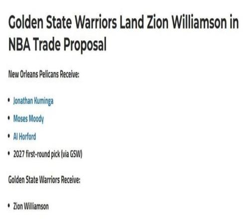 炸裂!勇士,錫安!4換1交易方案曝光...