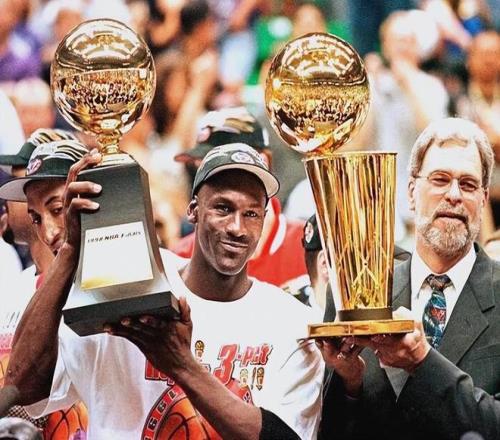 更為恐怖的是,他們?cè)诩竞筚愔薪?jīng)歷了一番激戰(zhàn),在總決賽成功擊敗了爵士隊(duì),喬丹上演了載入史冊(cè)的“世紀(jì)一投”,完成了個(gè)人的六冠王朝,統(tǒng)治了整個(gè)九十年代,同時(shí)也拿到了個(gè)人生涯的第6座總決賽MVP,自此也是完成了第二次的單賽季MVP大滿貫。