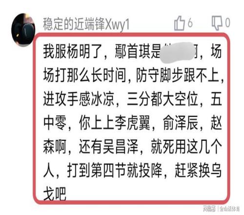 “仁者見(jiàn)仁,智者見(jiàn)智”,不知道大家對(duì)楊鳴,一直給鄢手騏大量上場(chǎng)時(shí)間怎么看?歡迎評(píng)論區(qū)留言!