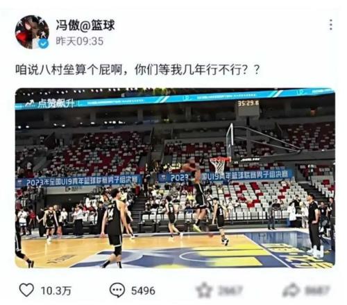 值得一提的是,馮傲曾經(jīng)在社交媒體上表示,等他幾年就能超過日本混血前鋒八村塁。