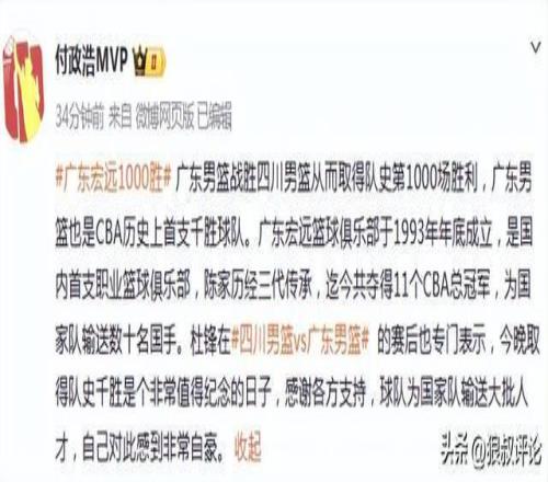 廣東加冕1000勝球隊(duì)引熱議!杜鋒:為國家隊(duì)輸送大量人才感到自豪