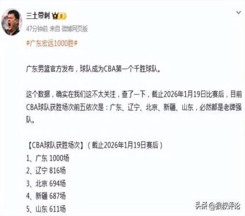2026年1月19日,廣東宏遠(yuǎn)成為CBA歷史上第一個(gè)拿到1000場(chǎng)勝利的俱樂部!這不僅是一個(gè)數(shù)字,更是一代代宏遠(yuǎn)人用無數(shù)汗水與熱血凝聚而成的一段王朝史詩!