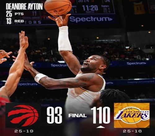 常規(guī)賽,湖人主場(chǎng)110-93戰(zhàn)勝猛龍。