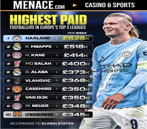 最近Menace.com發(fā)布了“歐洲五大聯(lián)賽周薪最高球員”名單,哈蘭德和姆巴佩排在最前面,凱恩、薩拉赫、范戴克、諾伊爾這些名字也都在榜上。同樣是周薪幾十萬英鎊,有人這段時間靠進球和助攻把身價打出來,也有人因為出場和狀態(tài)起伏很難對得上這份工資——這份榜單里,誰才是真的“花得值”?(數(shù)據(jù)截至2026年1月12日)