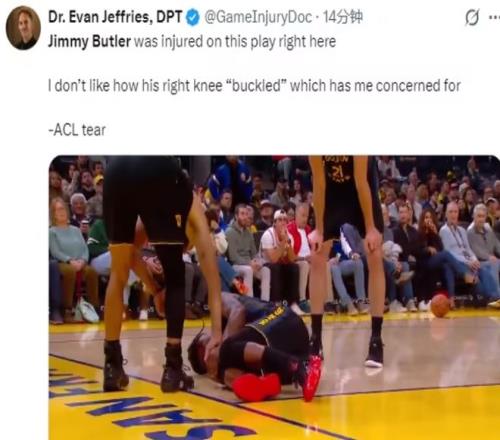 果不其然,比賽后僅僅不到3個(gè)小時(shí),NBA知名記者Shams Charania確認(rèn)了這一噩耗:勇士球星吉米·巴特勒遭遇右膝前十字韌帶撕裂,將缺席本賽季剩余的所有比賽!