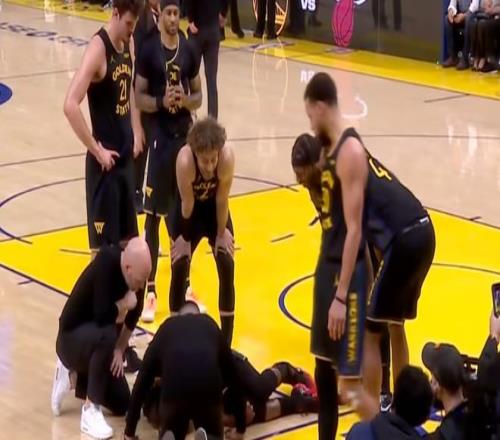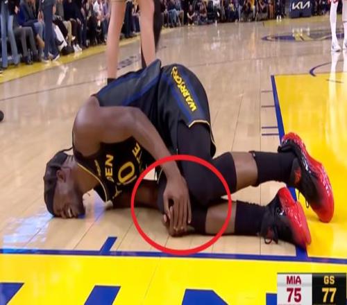 而就在今天,勇士隊(duì)在對(duì)陣熱火的比賽中,突發(fā)遭遇毀滅性打擊,球隊(duì)大核心吉米·巴特勒在第三節(jié)一次平常的接球后,膝蓋突然向內(nèi)扭曲,他痛苦地捂住右膝倒在地上。勇士隊(duì)馬上喊出暫停,隊(duì)友們迅速?lài)锨安榭窗吞乩盏那闆r。隨后,巴特勒在希爾德和庫(kù)明加的攙扶下緩緩離場(chǎng),整個(gè)過(guò)程中,他的右腳幾乎不能受力。