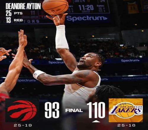 110-93,昨日常規(guī)賽,湖人主場(chǎng)大比分擊敗猛龍。