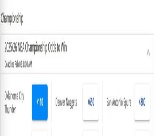 根據(jù)最新奪冠賠率,最被看好的前三支球隊(duì)依次是雷霆、掘金和馬刺,全部來自西部,其中雷霆的賠率斷層領(lǐng)先。