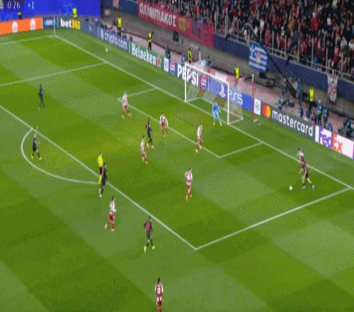第2分鐘,科斯蒂尼亞頭槌閃擊,奧林匹亞科斯1-0!