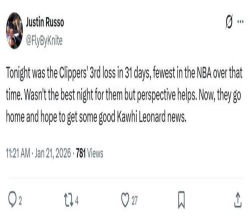 況且正如船記Justin Russo所說,本場比賽球隊(duì)表現(xiàn)并不完美,但這也只是他們過去31天內(nèi)的第三場失利,同期聯(lián)盟最少,所以重要的是積極保持心態(tài),回家后希望能聽到關(guān)于小卡的好消息。