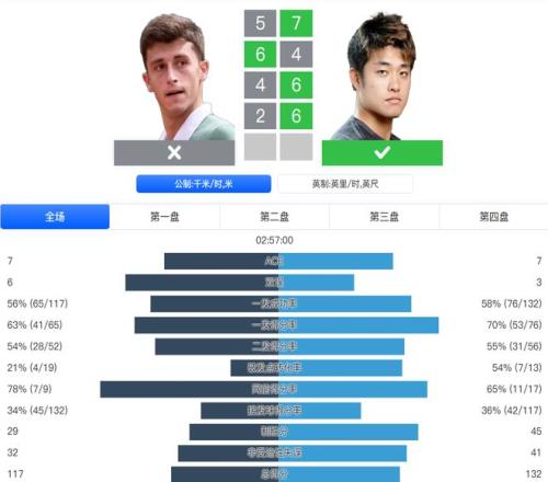 數(shù)據(jù)雙方不相上下 對手決勝盤表現(xiàn)更好