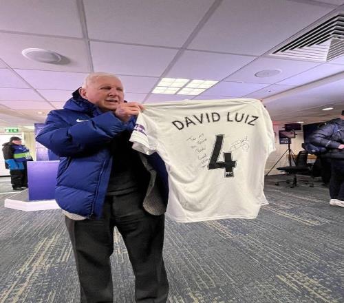 大衛(wèi)路易斯送簽名球衣給退休員工,后者為切爾西工作了56年