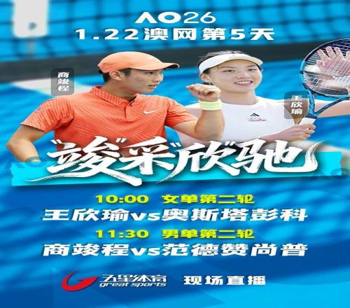 明天上午10點(diǎn),五星體育將帶來(lái)女單第二輪王欣瑜vs奧斯塔彭科的比賽,11:30帶來(lái)男單第二輪商竣程vs范德贊尚普的比賽。下午16:00將轉(zhuǎn)播男單第二輪辛納vs達(dá)克沃斯的比賽。