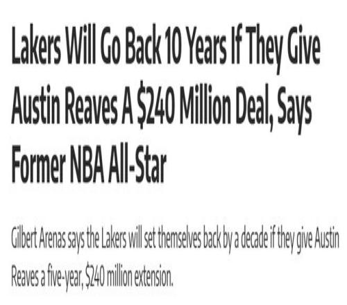 另外,前NBA球星阿里納斯在播客節(jié)目中談到了即將復出的里夫斯。他認為湖人不該續(xù)約里夫斯。