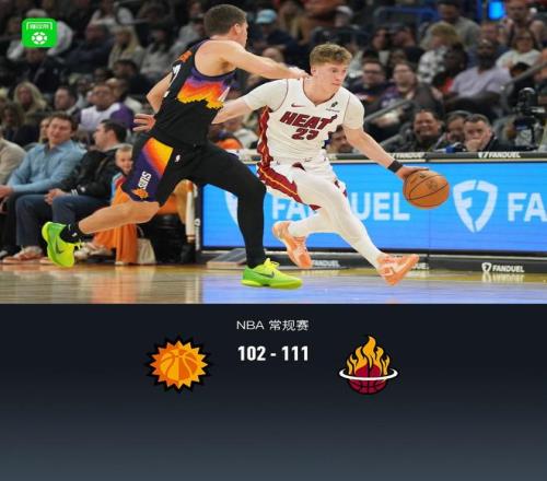 第四節(jié)太陽(yáng)狄龍-布魯克斯拿下6分,熱火哈克斯拿下11分,最終太陽(yáng)102-111不敵熱火