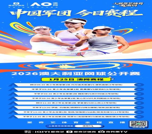 北京時(shí)間1月25日,2026澳大利亞網(wǎng)球公開(kāi)賽第8比賽日將如期進(jìn)行,愛(ài)奇藝體育將繼續(xù)為您全程直播所有精彩對(duì)決。
