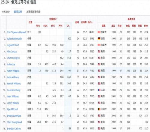 隊內(nèi)三號位出戰(zhàn)率最高的當屬多爾特和維金斯,兩位球員身高分別為193公分和196公分。哪怕個人防守能力很強面對重型鋒線對位也很吃力。有同樣困境的還有四號位,因為哈騰移動慢投射能力不足只能出任五號位,因此一旦碰上打小陣容對手時,雷霆就必須撤下哈騰將霍姆格倫頂上五號位,本賽季至今霍姆格倫有56.8%的時間打五號位,打四號位的時間只有43.2%。當霍姆格倫頂上五號位時,杰倫威和威廉姆斯就得從三號位上提到四號位。二人同樣打四號位身高嚴重不足,這也意味著當霍姆格倫被迫打五、杰倫威打四時,雷霆場上五人體型最小最容易被擁有大體型鋒線的球隊針對吊打。這也是為什么他們打不過馬刺、猛龍、開拓者的根本原因。