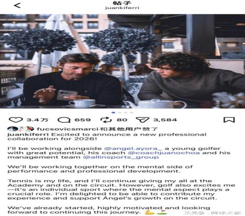 就在今天,前世界第一、阿爾卡拉斯的功勛教練費(fèi)雷羅宣布了一個(gè)令人震驚的消息:他將擔(dān)任21歲西班牙高爾夫新星ángel Ayora的心理教練。