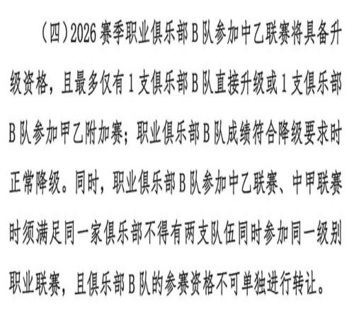 2026賽季職業(yè)聯(lián)賽政策變化,升降級有調(diào)整,B隊(duì)迎來新機(jī)遇