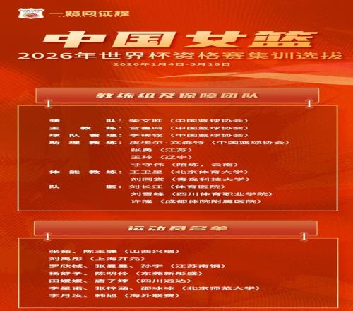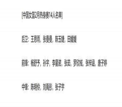 1月初的國家隊集訓(xùn)名單如下,
