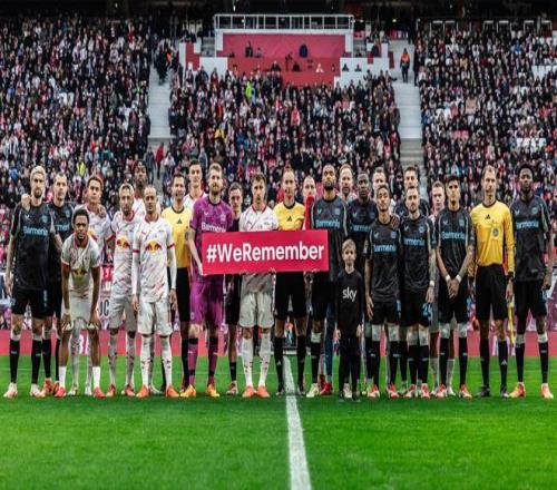 比賽開(kāi)始前,兩支球隊(duì)的球員與裁判一同站在球場(chǎng)上,手持寫(xiě)有 “銘記歷史”(#WeRemember)的標(biāo)語(yǔ),背景是座無(wú)虛席的體育場(chǎng),用團(tuán)結(jié)與緬懷開(kāi)啟賽事。2024/25 賽季門(mén)興格拉德巴赫對(duì)陣波鴻的比賽前,看臺(tái)上曾打出 “永不重演,就在當(dāng)下!”(Never again is now!)的巨型橫幅,傳遞著深刻的警示。