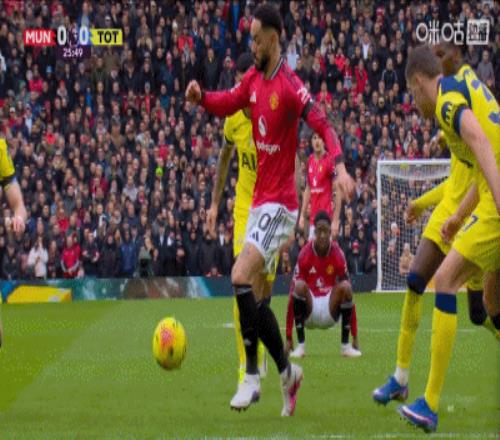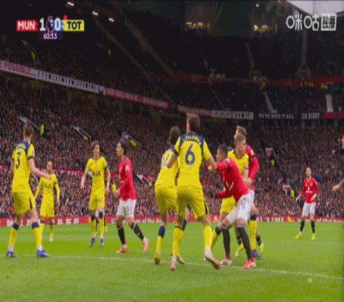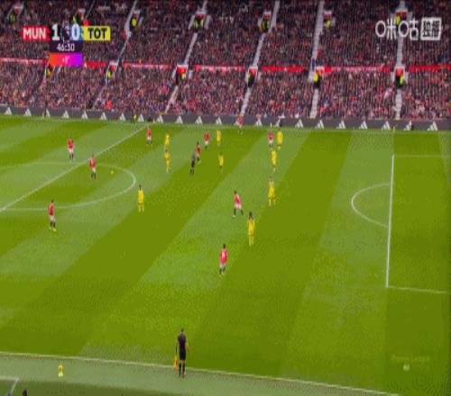 第37分鐘,曼聯(lián)角球配合,姆伯莫推桿破門,曼聯(lián)1-0領先熱刺!