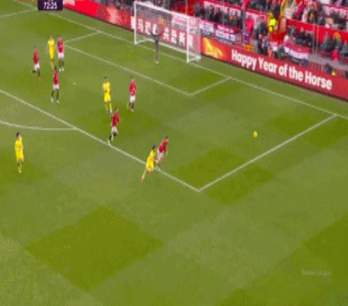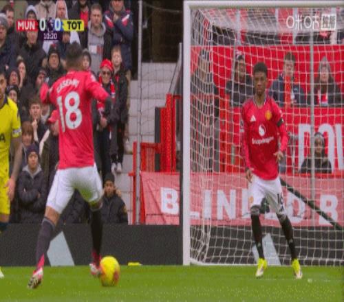 第80分鐘,達洛特傳中,B費門前包抄破門,曼聯(lián)2-0領先熱刺