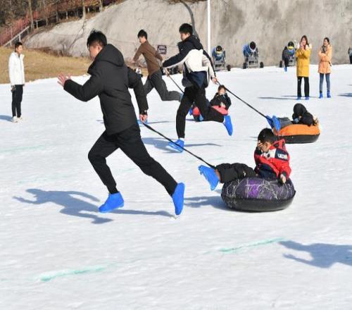 2026年1月17日,湖北襄陽(yáng),冰雪嘉年華活動(dòng)上,人們參加親子雪圈賽跑。視覺中國(guó) 圖