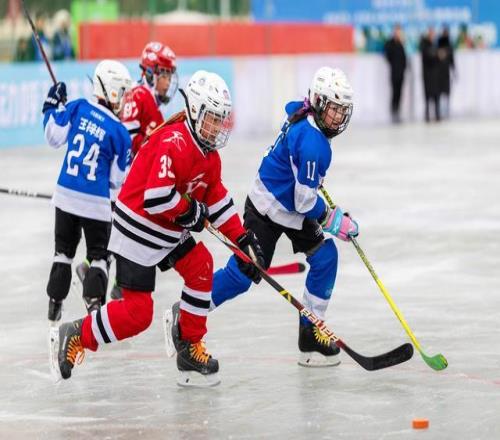 2026年1月25日,呼和浩特市大眾冰雪季冰雪戰(zhàn)隊(duì)聯(lián)賽活動(dòng)現(xiàn)場(chǎng),冰雪愛好者在冰球比賽中展開激烈角逐。視覺中國(guó) 圖