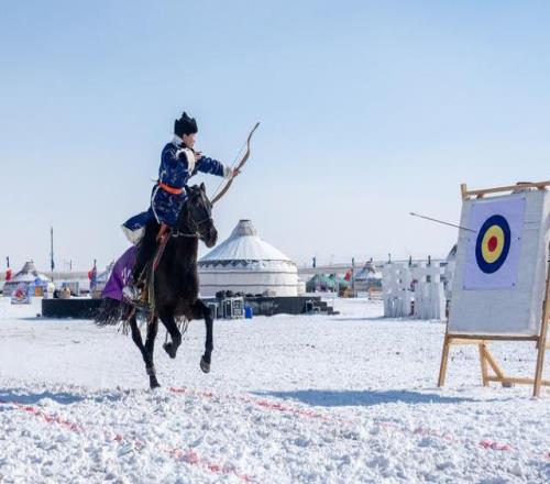 2026年2月1日,內(nèi)蒙古錫林郭勒,第三屆冬季蒙古馬超級(jí)聯(lián)賽總決賽點(diǎn)熱寒冬。選手們參加15公里耐力賽、跑馬射箭、跑馬拾哈達(dá)等五項(xiàng)冰雪賽事。視覺中國(guó) 圖