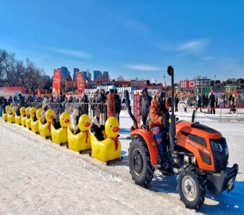 2026年2月1日,遼寧沈陽(yáng),新年春節(jié)將至,北陵冰雪大世界設(shè)置了冰滑梯、自行車樂園、網(wǎng)紅鐵牛拖拉機(jī)等游樂項(xiàng)目,吸引不少游客前來體驗(yàn)游玩。視覺中國(guó) 圖