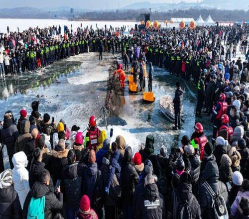 2026年2月1日,沈陽(yáng)棋盤山第二屆秀湖冬捕嘉年華暨漁業(yè)經(jīng)貿(mào)會(huì)舉行。據(jù)了解,本次活動(dòng)將冰雪運(yùn)動(dòng)、漁獵文化、美食文化相融,匯冬捕之趣、魚宴之鮮、民俗之美、經(jīng)貿(mào)之機(jī)為一體,打造了產(chǎn)業(yè)一體化、體驗(yàn)一站式的冰雪新IP 。視覺中國(guó) 圖