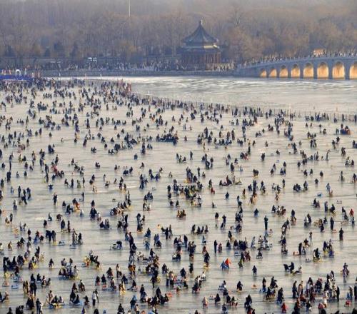 2026年1月31日,北京頤和園昆明湖冰場(chǎng)迎來客流高峰,市民游客享受冰上樂趣。視覺中國(guó) 圖