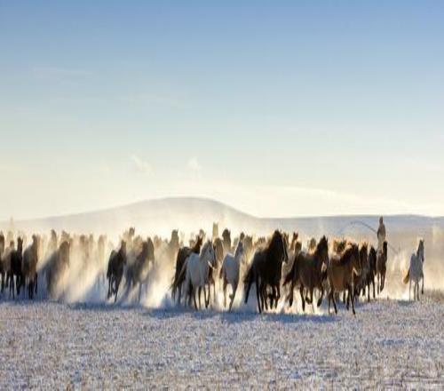 2026年1月10日,內(nèi)蒙古烏拉蓋管理區(qū),第三屆冰雪文旅主題活動(dòng)開幕,萬馬在雪域高原上奔騰。視覺中國(guó) 圖