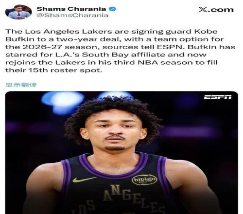北京時(shí)間2月8日,根據(jù)ESPN名記Shams報(bào)道,洛杉磯湖人用一份1+1的兩年正式合同簽約后衛(wèi)科比-巴夫金,其中第二年是球隊(duì)選項(xiàng),他成為湖人陣容第15人,曾經(jīng)在G聯(lián)賽有過單場41+8+8三分表現(xiàn)。